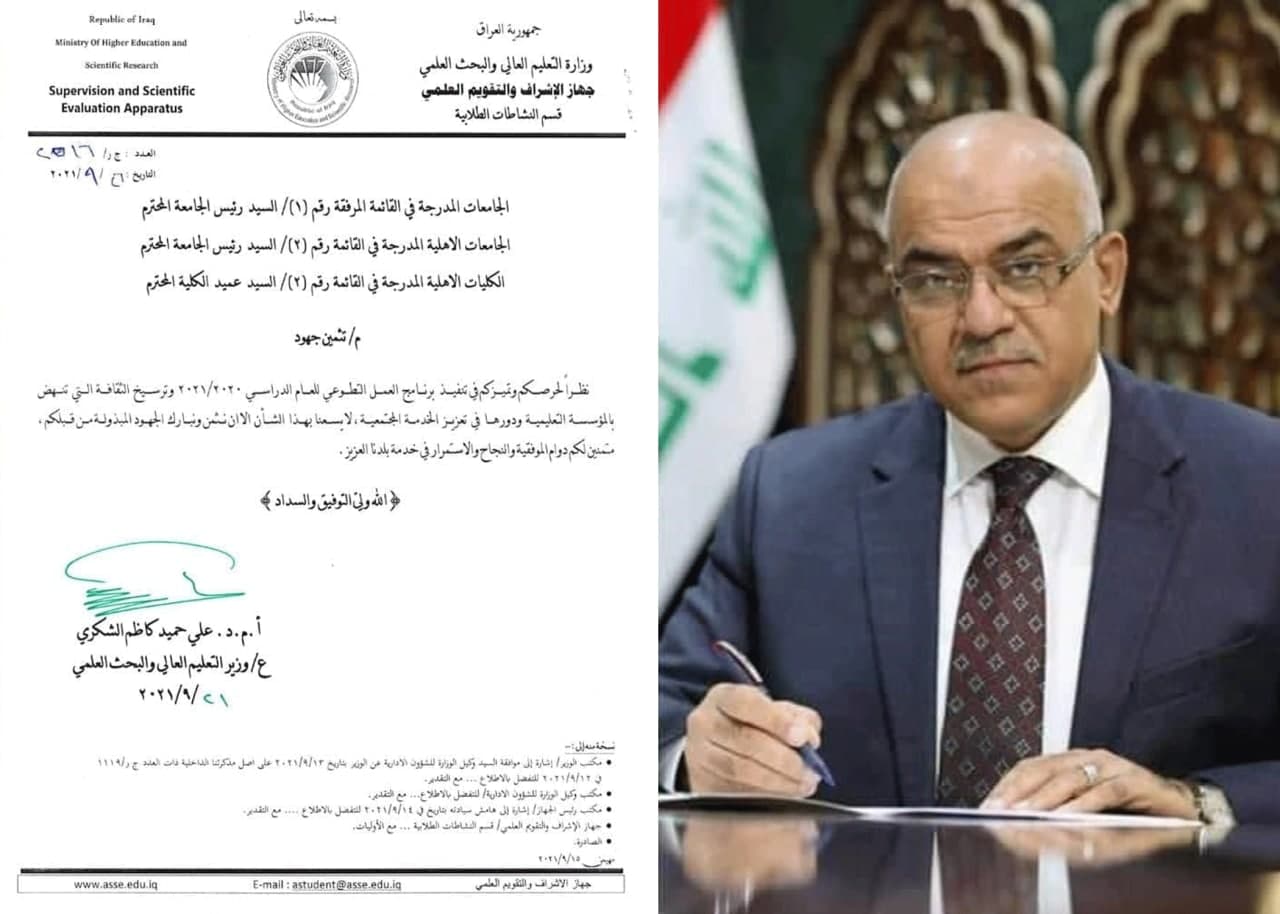 The Minister of Higher Education, Prof. Dr. Nabil Kazem Abdul Sahib, appreciates University of Warith Al- Anbiyaa efforts for its high carness and excellence in implementing the voluntary work program and consolidating this culture that enhances educational institutions, wishing continued success for our dear country.