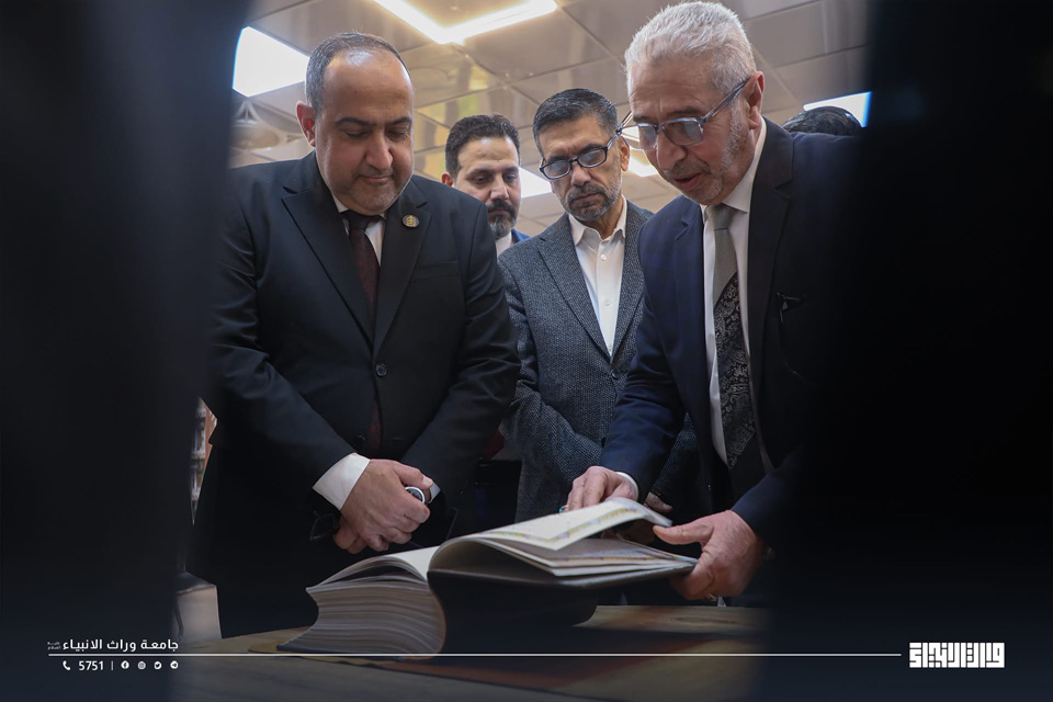 University of Warith Al-Anbiyaa celebrated the receipt of a handwritten copy of the Holy Qur’an, to which its students, faculty members, and staff contributed. The official ceremony was held at the University’s Central Library and was attended by the University President, Professor Dr. Ibrahim Saeed Al-Hayyawi, along with several college deans.